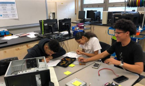 You can click on the "Technology Programs" button below to get a better picture of our CTE academic tracks. We have Virtual Enterprises Junior Ventures for our middle schoolers and our Computer Science program that culminates in high school with AP Computer Science Principles. Check out the other quick link buttons below to learn more about our Middle School, High School and after-school programs. And don't forget to look at the IN-Tech Academy Virtual Tour, which highlights some of our academic facilities here at IN-Tech.